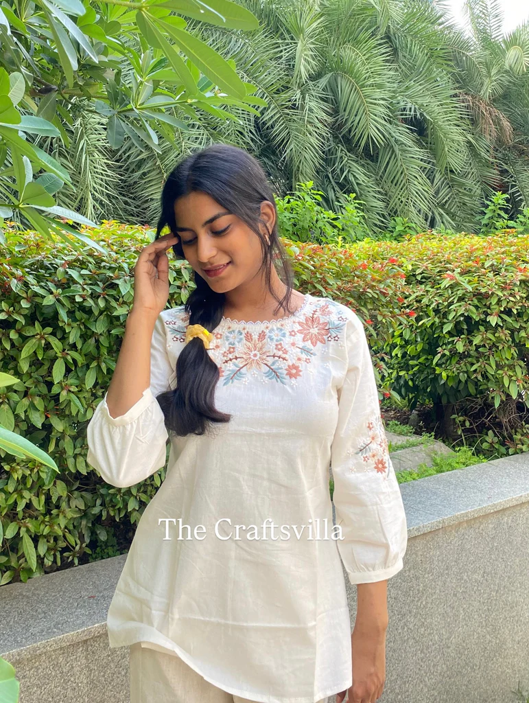 Work: Floral Thread Embroidery on Yoke & Sleeves